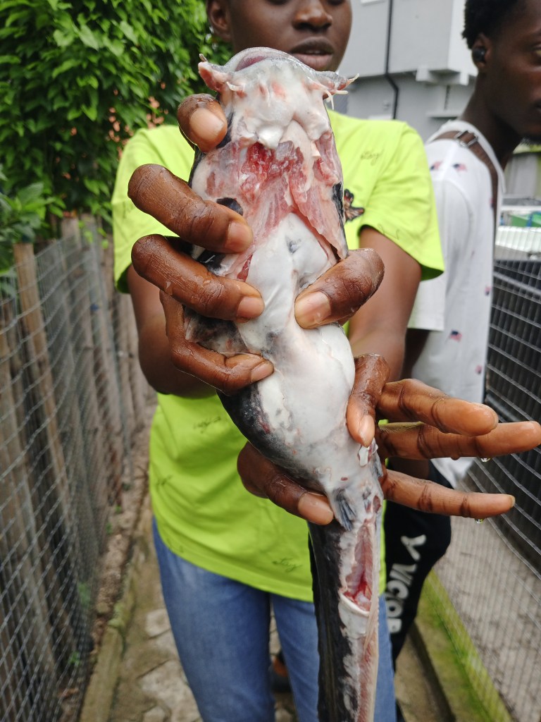 From the fry stage, young African Catfish compete with each other for space and feed. As they compete, the bigger individuals feed on the smaller and weaker ones.